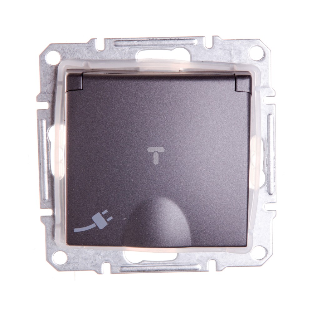 SEDNA Gniazdo hermetyczne pojedyncze z/u 16A IP44 z przesłonami i klapką grafitowe SDN2800370