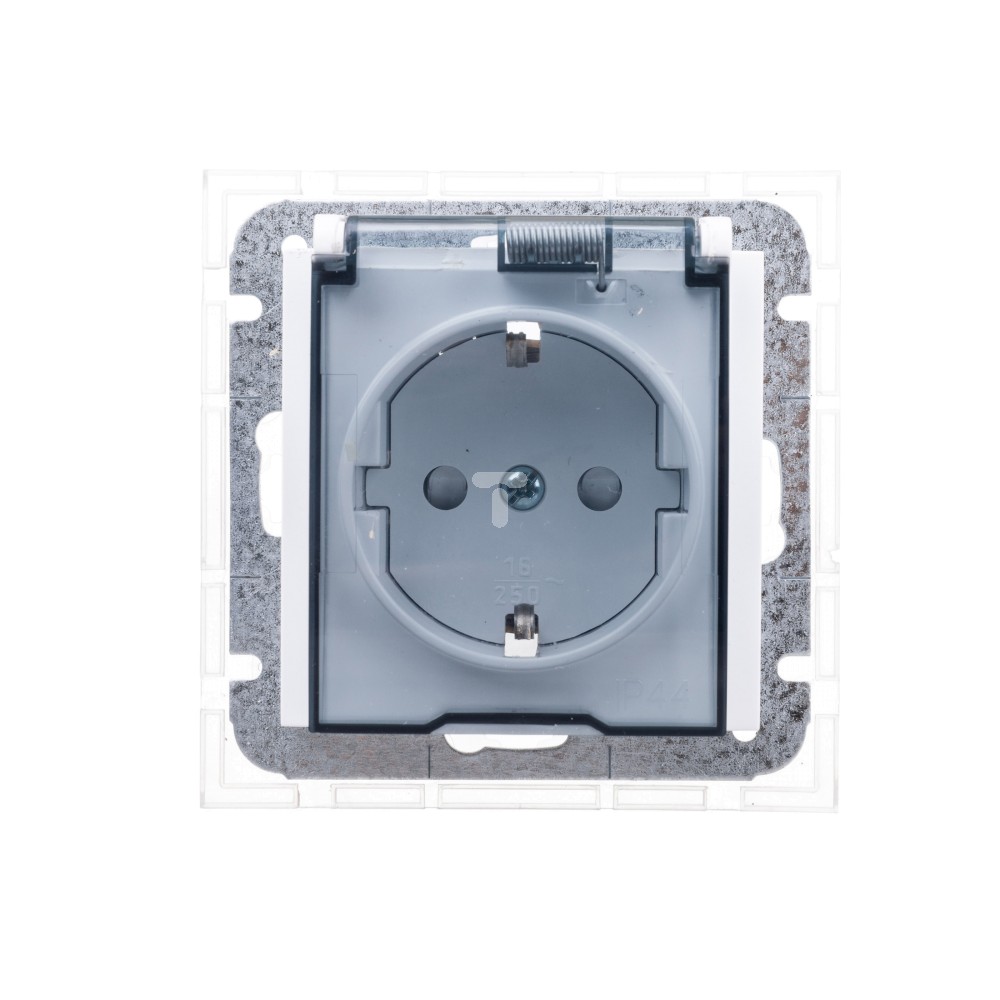 Sentia Gniazdo hermetyczne Schuko 16A IP44 z klapką transparentną z przesłonami białe 1469-10