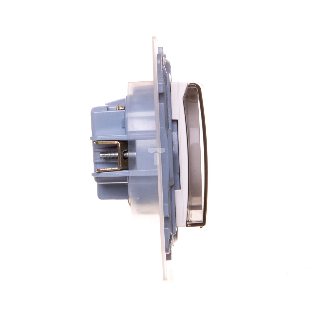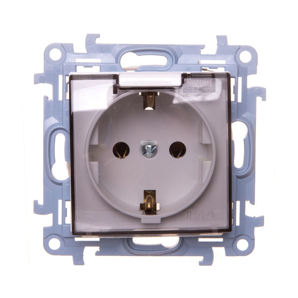 Simon 10 Gniazdo pojedyncze z uszczelką klapka transparetna biała 16A 250V IP44 CGSZ1B.01/11A WC-GSZ1Bxx-01-11Ax