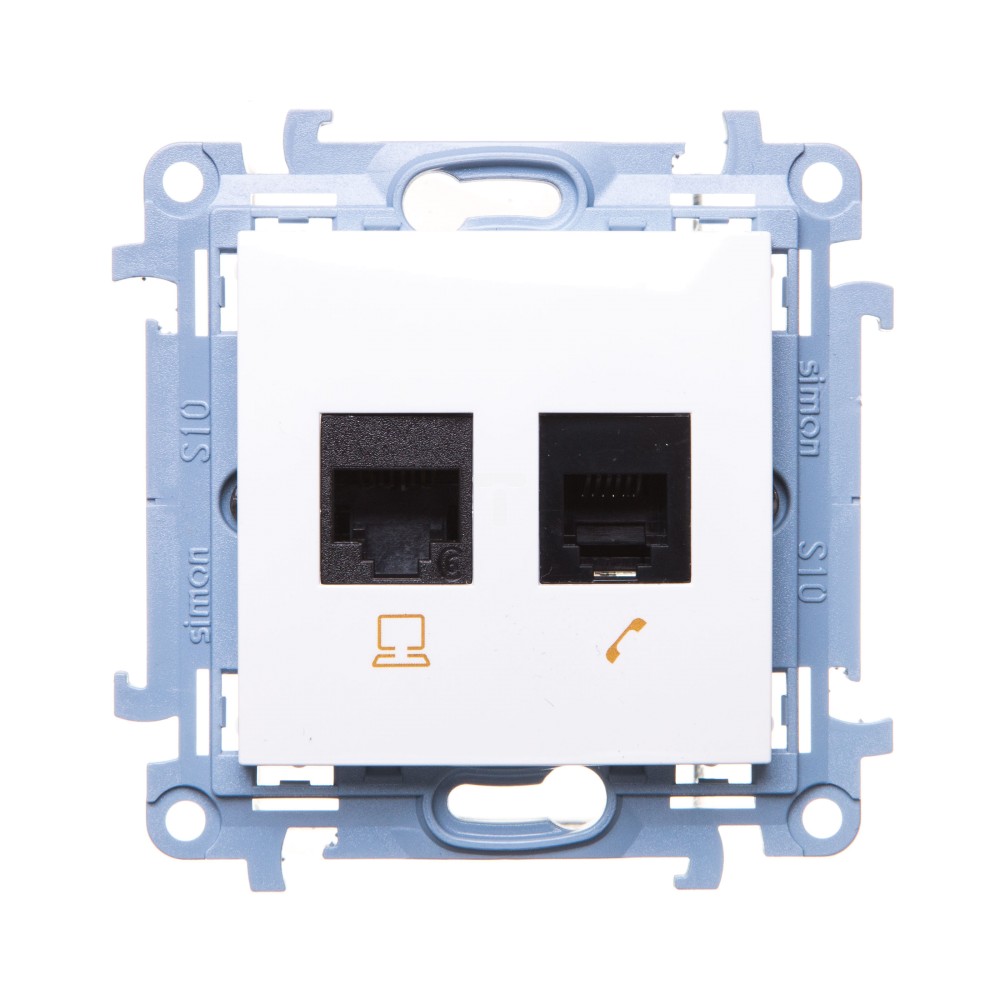 Simon 10 Gniazdo RJ45 kat 6 + gniazdo telefoniczne RJ12 białe C6T.01/11 wc-6txxxxx-01-11xx