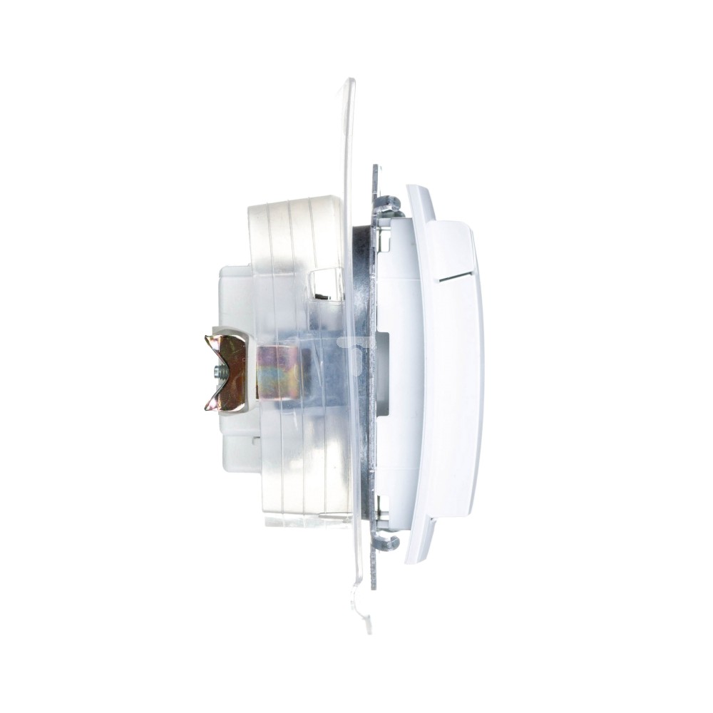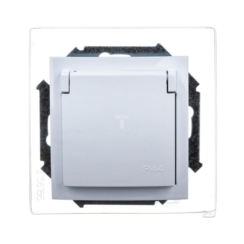 Simon 15 Gniazdo hermetyczne pojedyncze z/u 16A IP44 z przesłoną torów i klapką transparentną białe 1591950-030 WS15-1591950-030