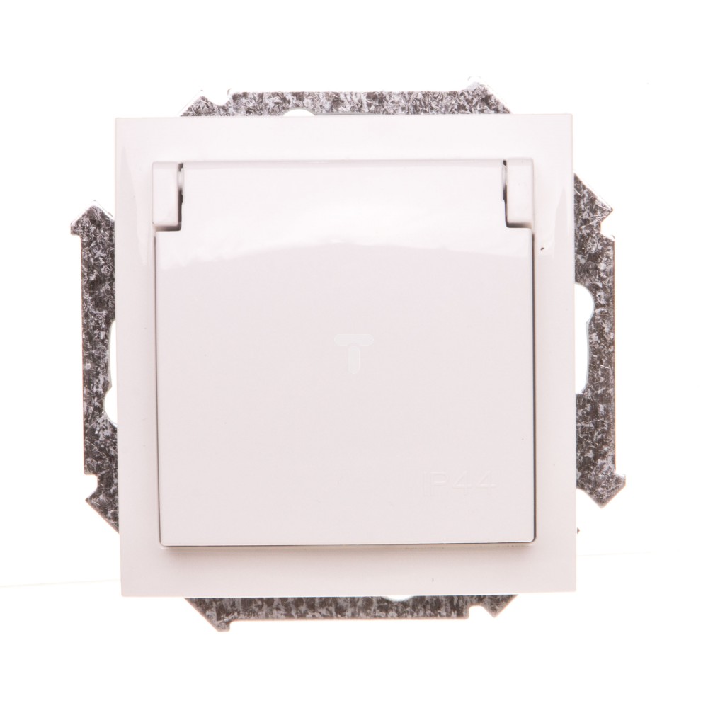 Simon 15 Gniazdo hermetyczne pojedyncze z/u 16A IP20 z klapką pełną bez uszczelki białe 1591940B-030 WS15-1591940B-030