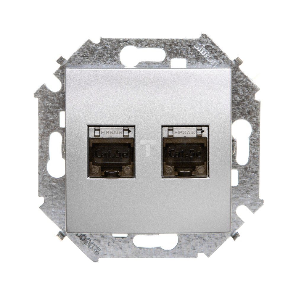 Simon 15 Gniazdo komputerowe podwójne RJ45 kat. 5e z przesłoną aluminium metalizowane podwójne WS15-1591554-026