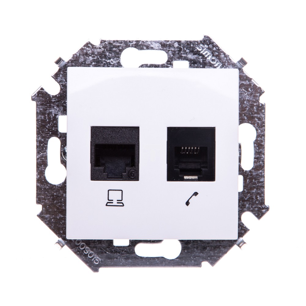 Simon 15 Gniazdo komputerowo-telefoniczne RJ45 kat. 6 + RJ12 (moduł) białe 1591542-030 WS15-1591542-030