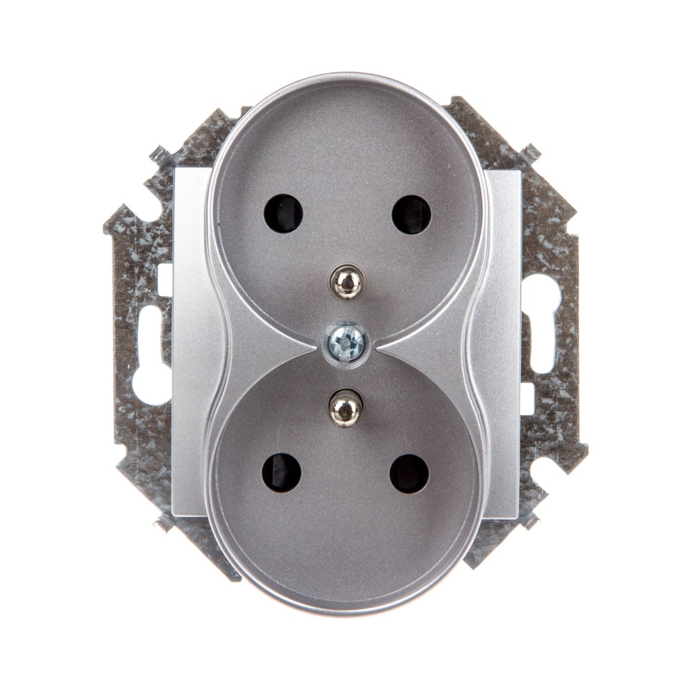 Simon 15 Gniazdo podwójne z/u 16A IP20 z przesłoną torów aluminium metalizowane 1591461-026 WS15-1591461-026