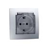 Simon 15 Gniazdo pojedyncze z/u Schuko wersja IP44 klapka transparentna aluminium (met.) kompletne 1591450-026 WS15-1591450-026