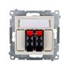 2-krotne gniazdo głośnikowe DGL32.01/41 to podwójny model wchodzący w skład rozbudowanej i uznanej przez klientów gamy Simon54. Seria ta to zbiór osprzętu elektroinstalacyjnego, który wykonany został z wysokiej jakości materiałów, posiada bogatą gamę kolorystyczną, jest łatwy w montażu, a dodatkowo jest w przystępnej cenie. Gniazdo zostało zaprojektowane, by spełniać oczekiwania przede wszystkim profesjonalistów. Przeznaczone jest do rozprowadzania instalacji nagłośnieniowej w pomieszczeniach ta