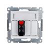 Gniazdo głośnikowe jest produktem z kolekcji Simon Premium 54 firmy Simon-Kontakt. Firma ta cieszy się ugruntowaną pozycją na rynku, dzięki stosowaniu nowoczesnych technologii w swoich produktach. Gniazdo przeznaczone jest do podłączania przewodów głośnikowych. W gniazdku jest zamontowany nowy mostek, który dzięki wspornikom na poziomice upraszcza ustawienie mechanizmu. Sam mechanizm zajmuje niewiele miejsce w puszce instalacyjnej, a metalowe mocowanie dociskające ramkę do mostka sprytnie ukrywa