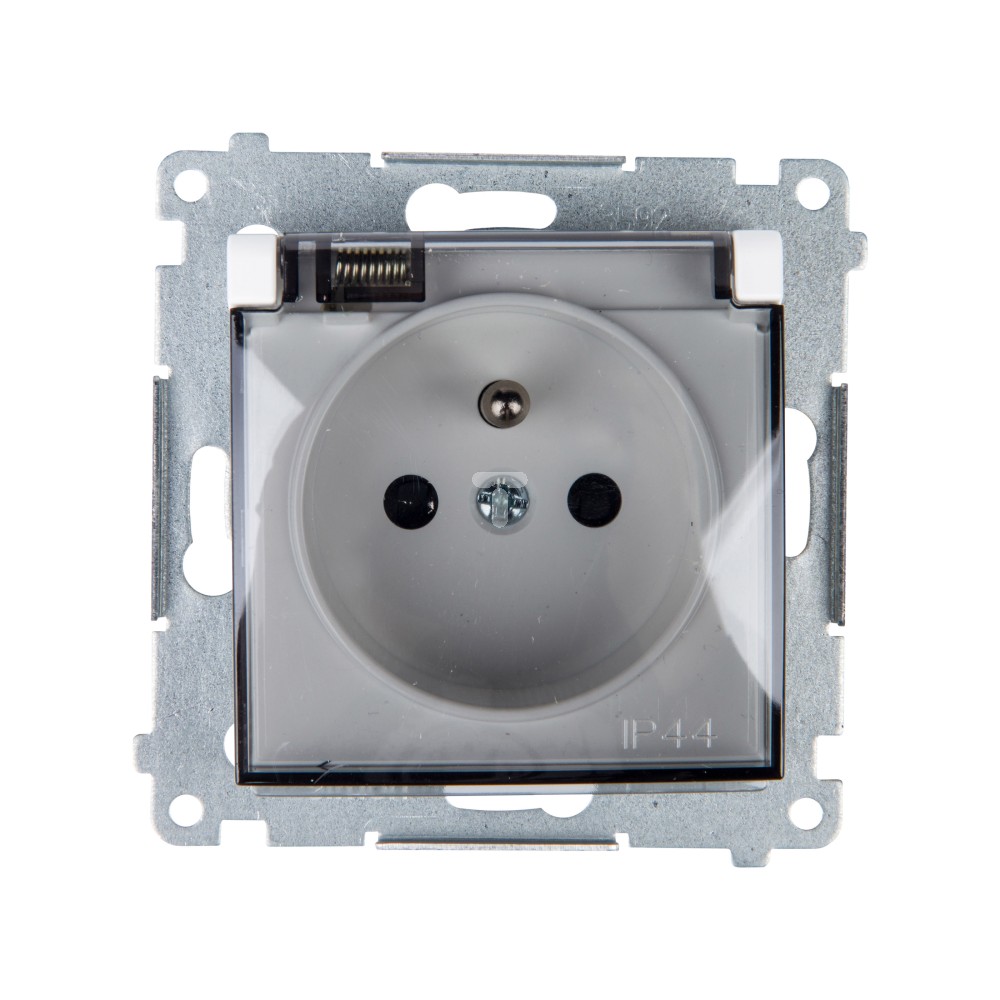 Simon 54 Gniazdo hermetyczne pojedyncze z/u 16A IP44 z klapką transparentną białe DGZ1BUZ.01/11A WMDW-53121x-011