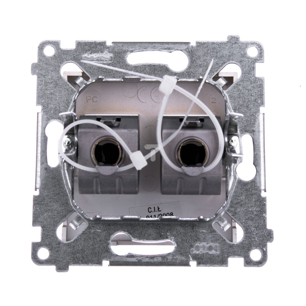Simon 54 Gniazdo komputerowe podwójne 2xRJ45 kat.6 ekranowane z przesłoną zloty mat D62E.01/44 WMDK-0640xx-044