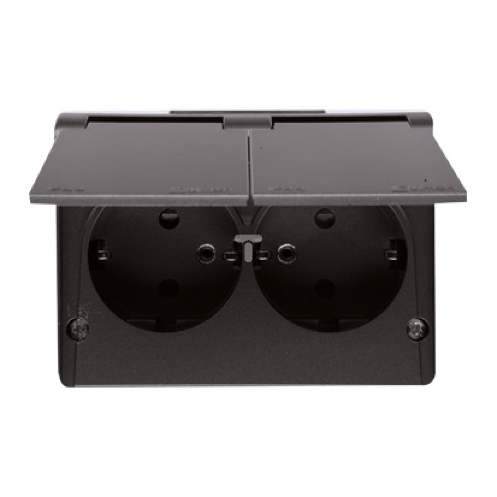 Simon 54 Gniazdo podwójne Schuko bryzgoszczelne IP44 z przesłonami wersja skandynawska antracyt EGSZ2NZB/48 WMEW-32211x-048