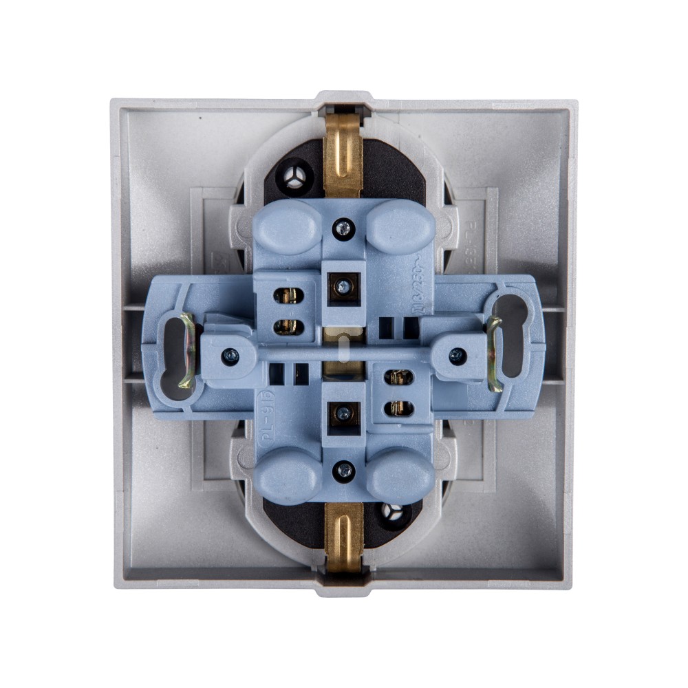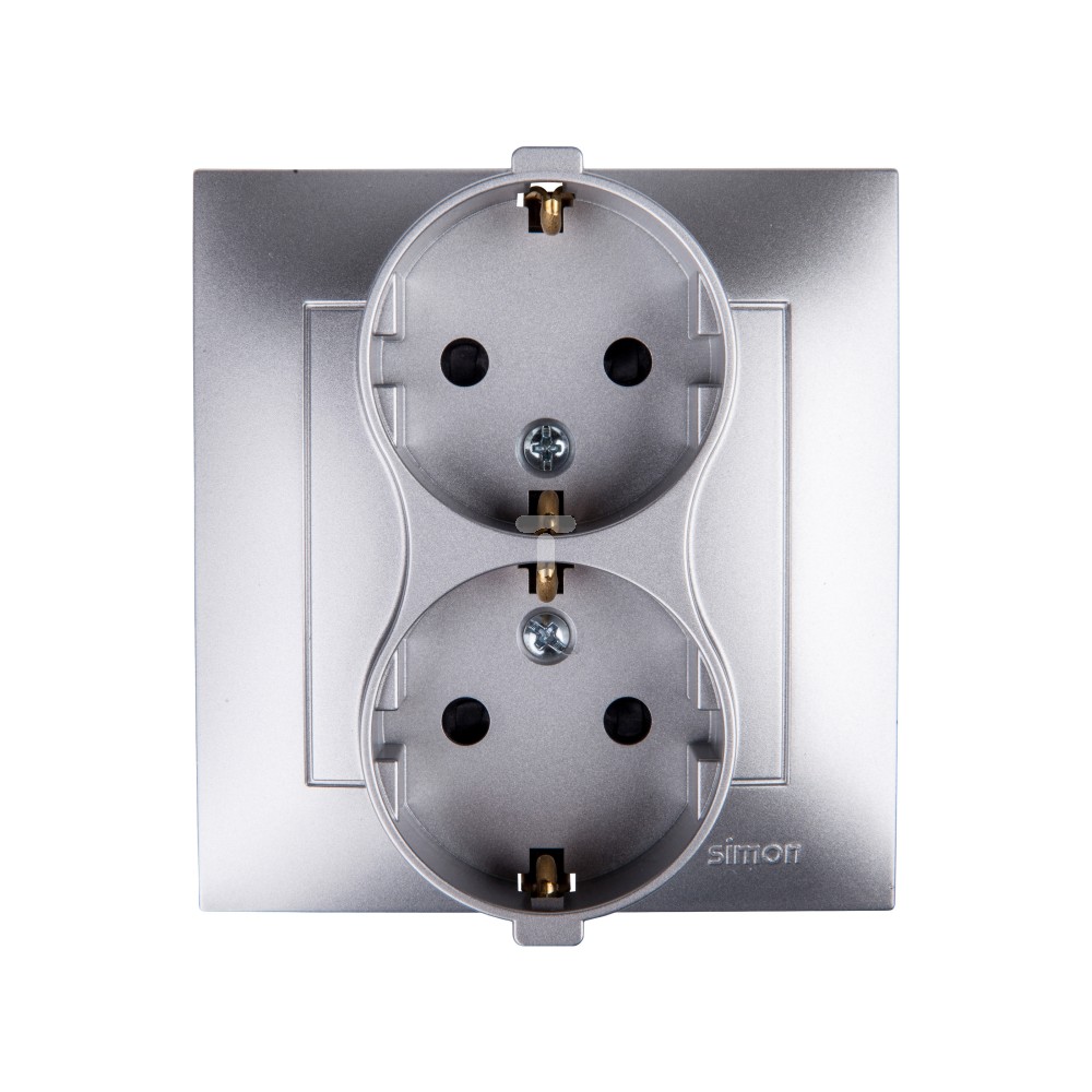 Simon 54 Gniazdo podwójne SCHUKO z/u 16A IP20 z przesłoną torów srebrny mat DGSz2Z/43 WMDW-12211N-043
