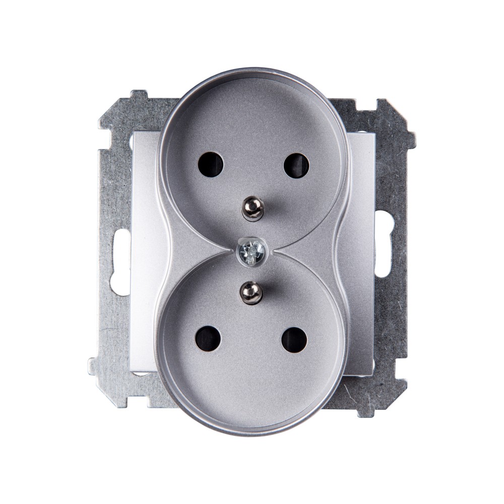 Simon 54 Gniazdo podwójne z/u 16A IP20 z przesłoną torów srebrny mat DGZ2MZ.01/43 WMDW-00210M-043