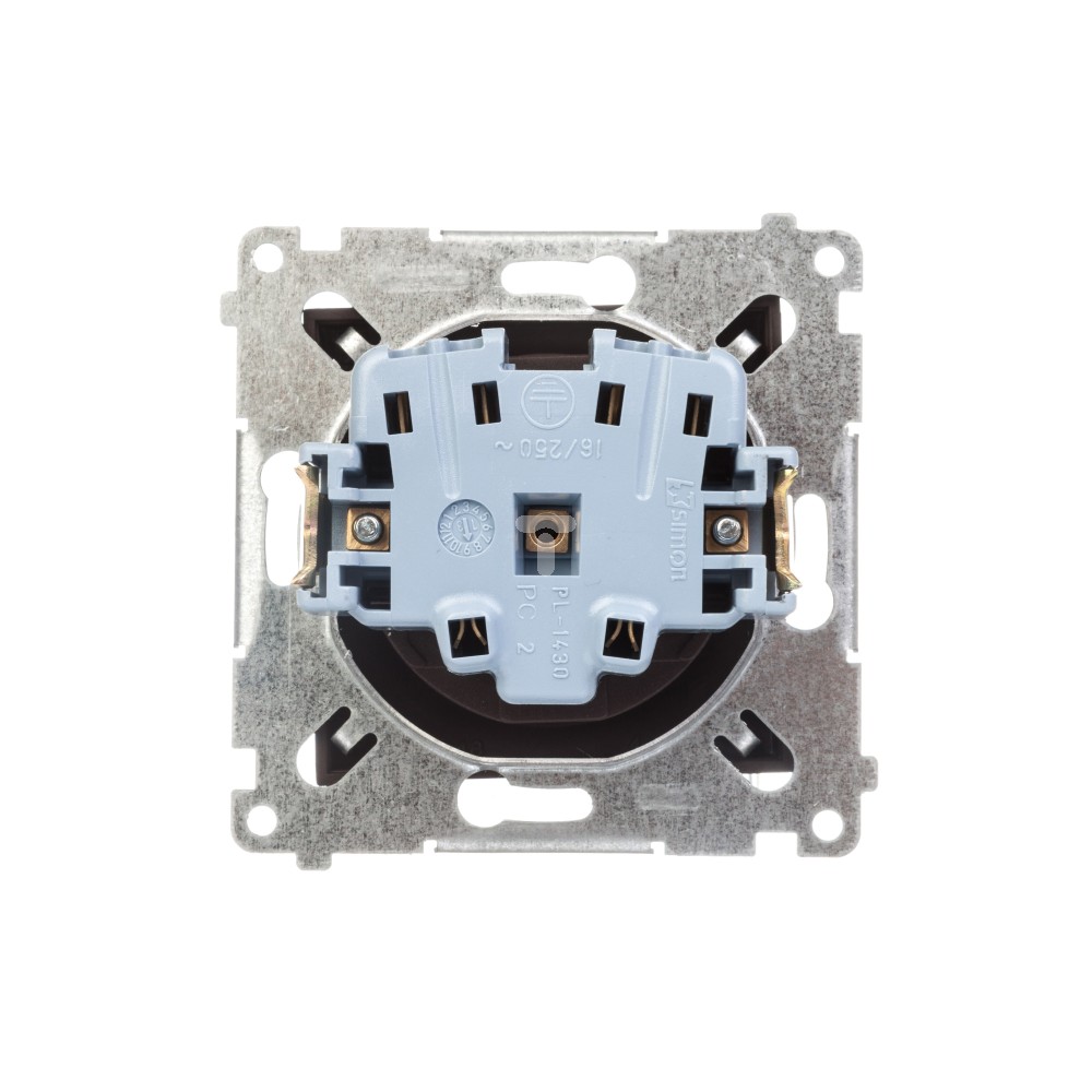 Simon 54 Gniazdo pojedyncze b/u 16A IP20 z przesłoną torów brąz mat DG1Z.01/46 WMDW-00101x-046