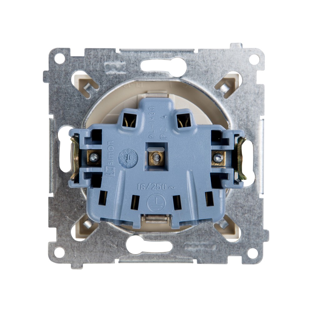 Simon 54 Gniazdo pojedyncze SCHUKO z/u 16A IP20 z przesłoną torów kremowe DGSz1Z.01/41 WMDW-03111x-041