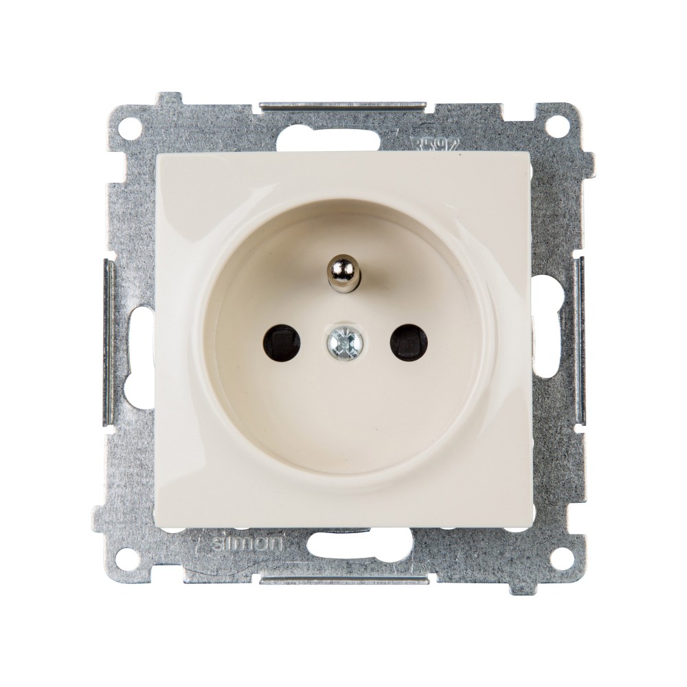 Simon 54 Gniazdo pojedyncze z/u 16A IP20 z przesłoną torów kremowe DGZ1Z.01/41 WMDW-00111x-041