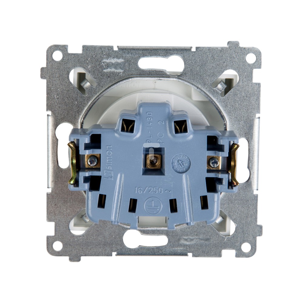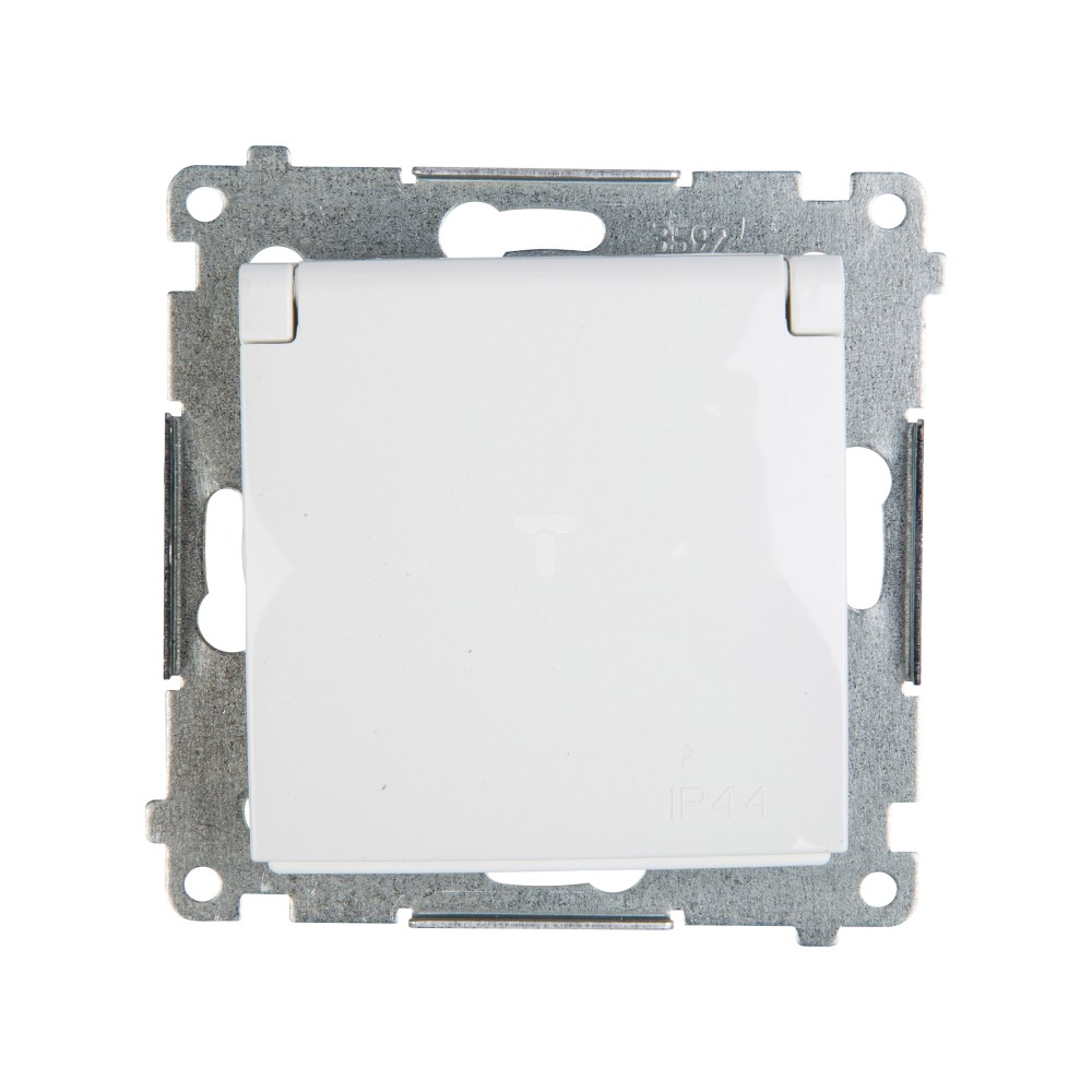 Simon 54 Gniazdo pojedyncze z/u 16A IP20 z przesłoną torów białe DGZ1BUZ.01/11 WMDW-50121x-011