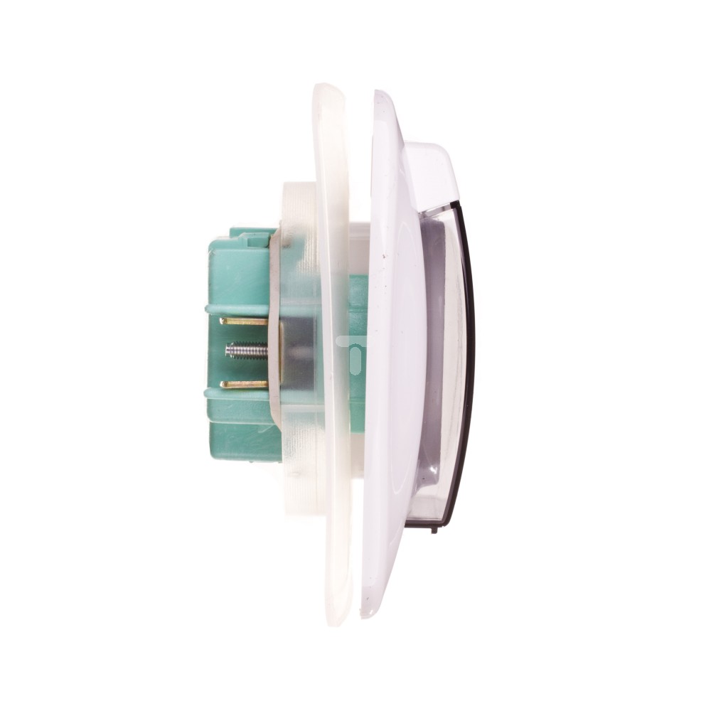 Simon Akord Gniazdo hermetyczne pojedyncze z/u 16A IP44 z przesłoną torów i klapką dymną białe AGZ1Bze/11a WMAW-33111x-1011