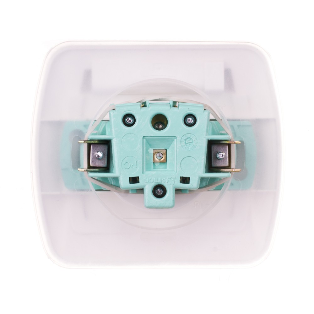 Simon Akord Gniazdo hermetyczne pojedyncze z/u 16A IP44 z przesłoną torów i klapką dymną białe AGZ1Bze/11a WMAW-33111x-1011
