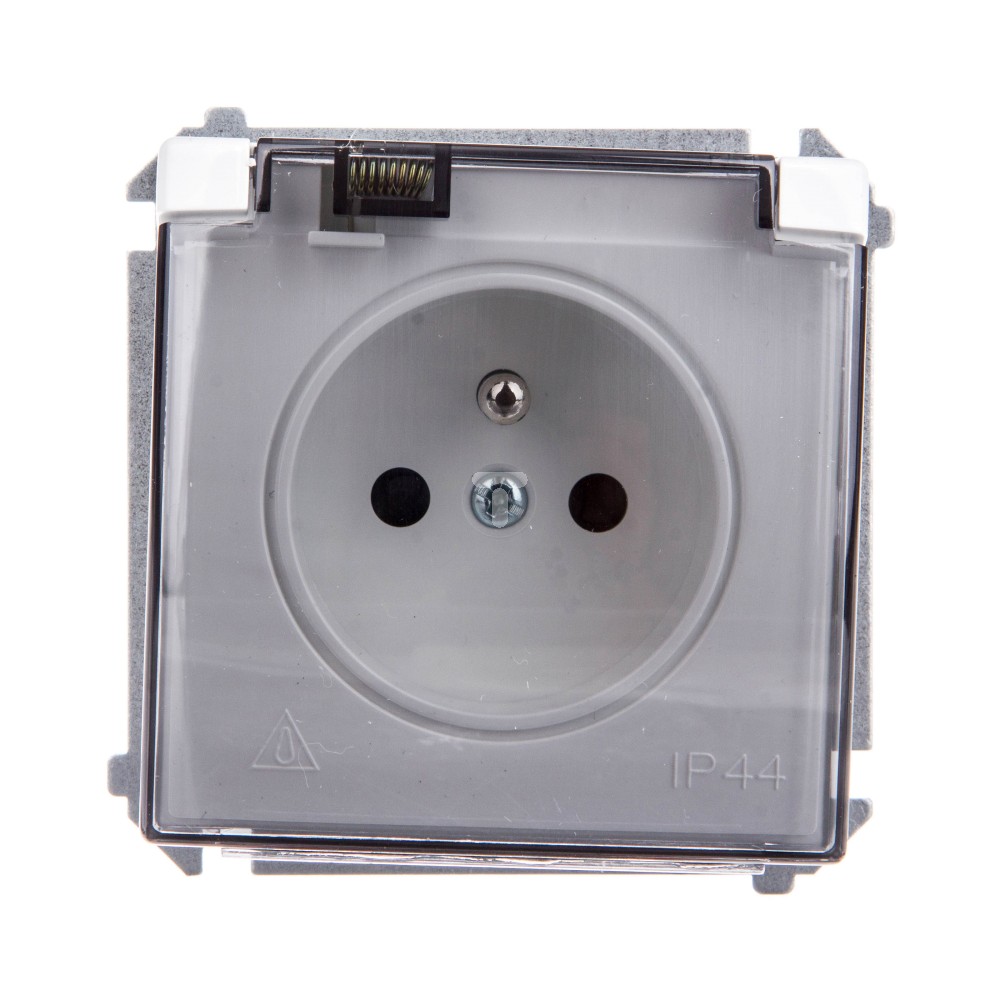 Simon Basic Gniazdo hermetyczne pojedyncze z/u 16A IP44 z przesłoną torów i klapką dymną białe BMGZ1Bz.01/11a WMUW-53111x-1021