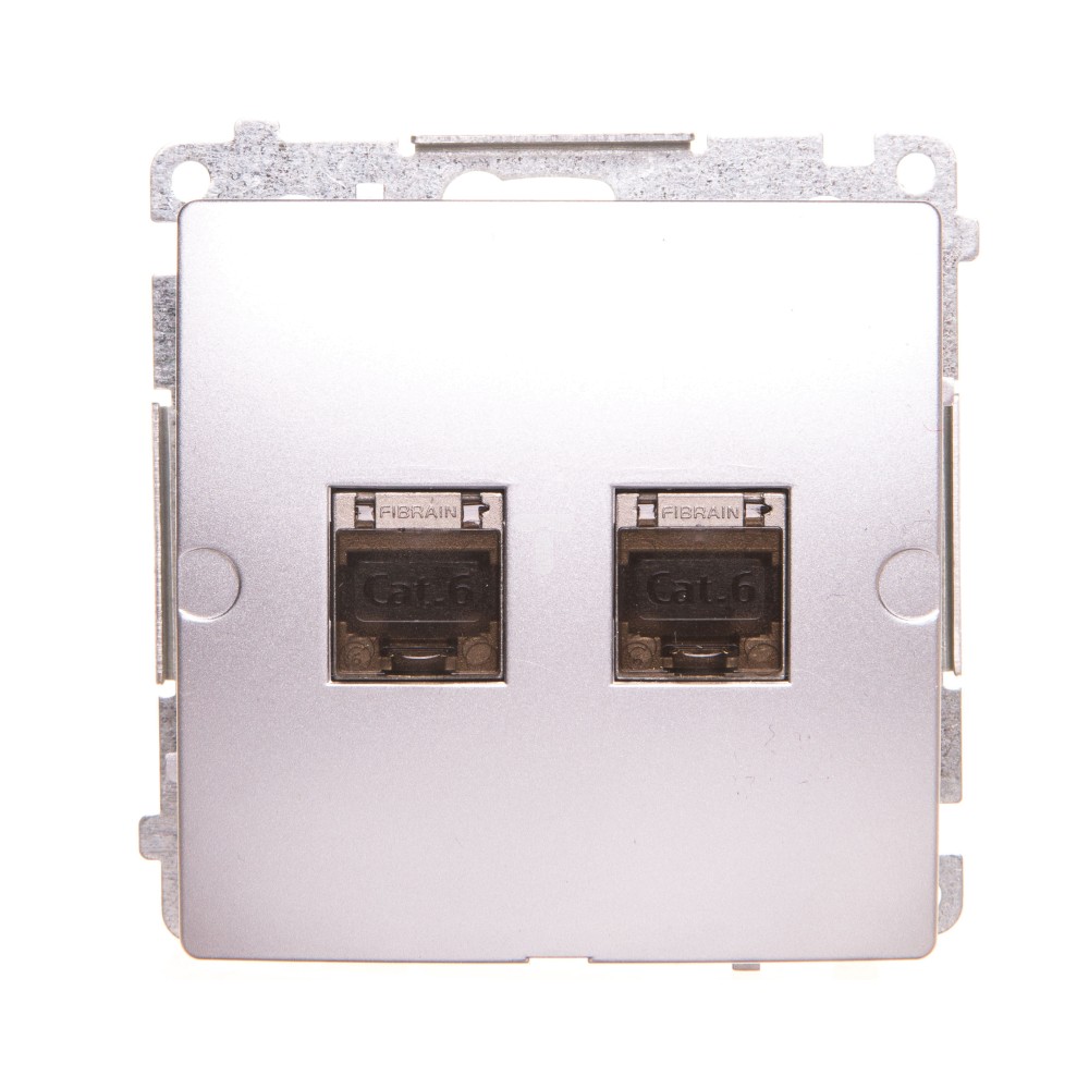 Simon Basic Gniazdo komputerowe RJ45, kategoria 6, podwójne ekranowane z przesłoną srebrny mat BM62E.01/43 WMUK-0640xx-4011