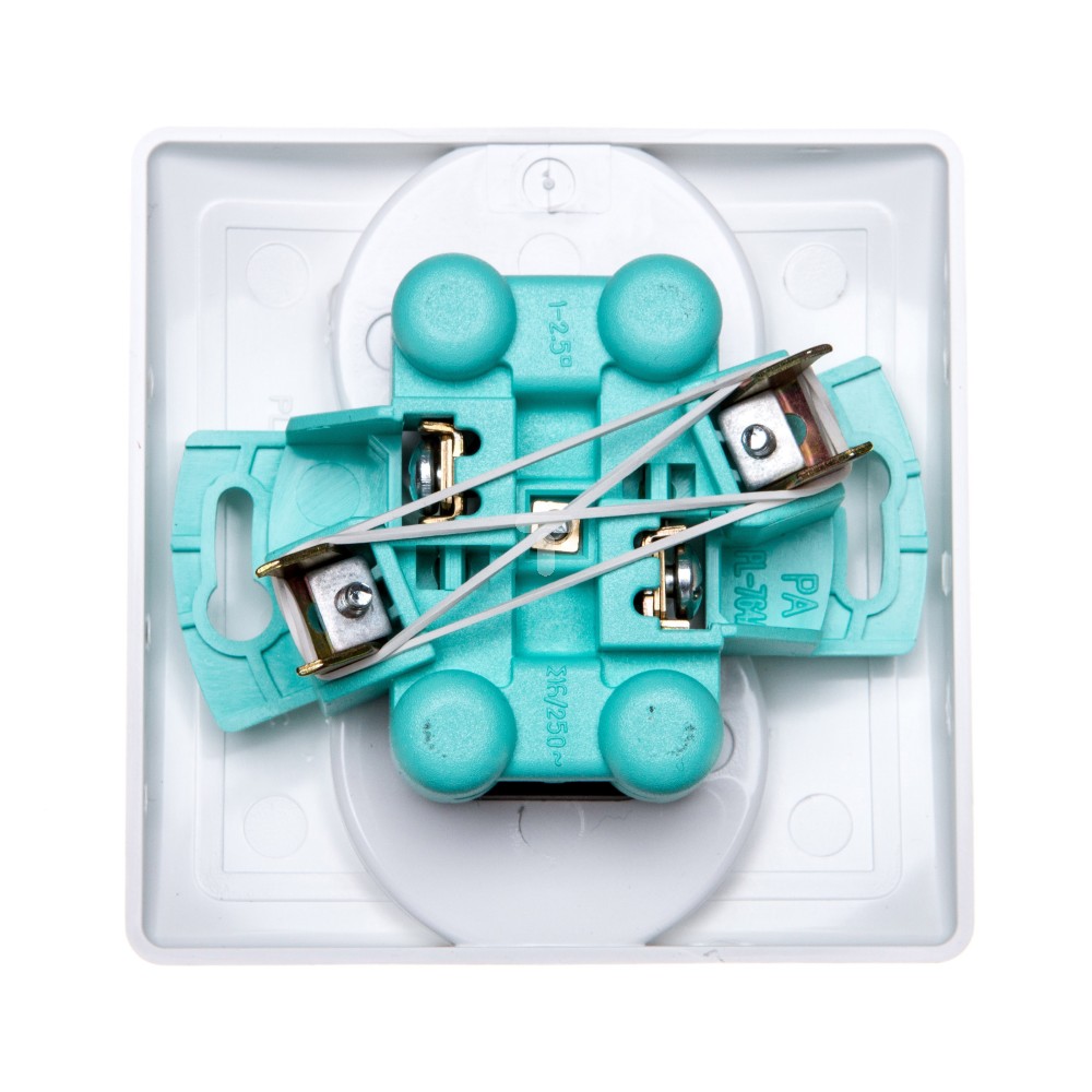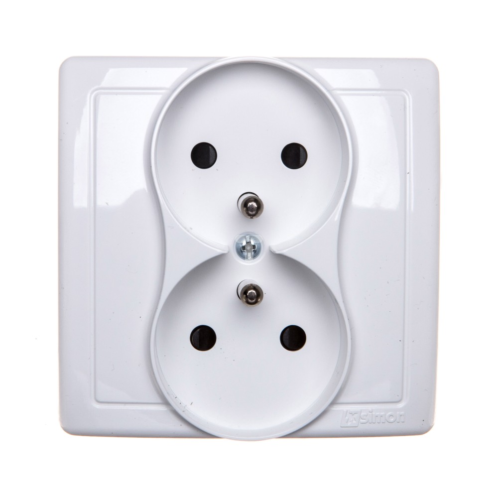 Simon Basic Gniazdo podwójne z/u 16A IP20 z przesłoną torów białe BMGZ2z/11 WMUW-10211x-1011