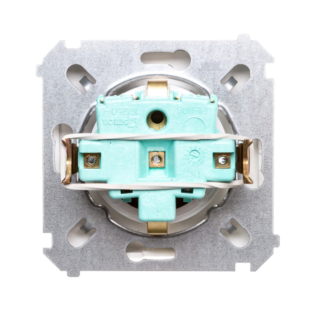 Simon Basic Gniazdo pojedyncze SCHUKO z/u 16A IP20 z przesłoną torów białe BMGSZ1z.01/11 WMUW-02111x-1011