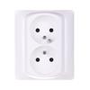 Prezentowane gniazdo podwójne zostało wyposażone w bolec uziemiający. Posiada również praktyczne przesłony styków.. Dodatkowo mechanizm został wyposażony w podwójne zaciski śrubowe. Produkt został przeznaczony - zgodnie z instrukcjami specjalistów - do sprawdzonej, trwałej, a przede wszystkim, do bezpiecznej instalacji w puszce pojedynczej za pomocą metody na pazurki lub wkrętki. Niewątpliwą zaletą tego produktu jest materiał, z jakiego został wykonany. Specjaliści zadbali bowiem o dobór najwyżs