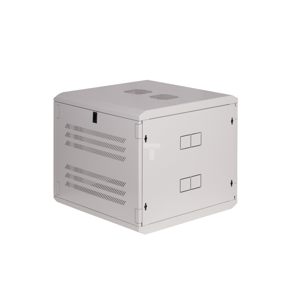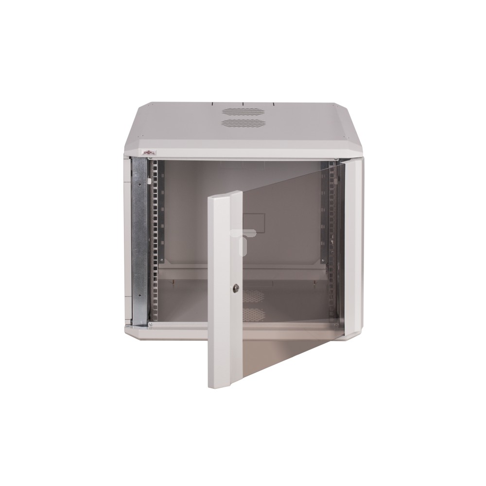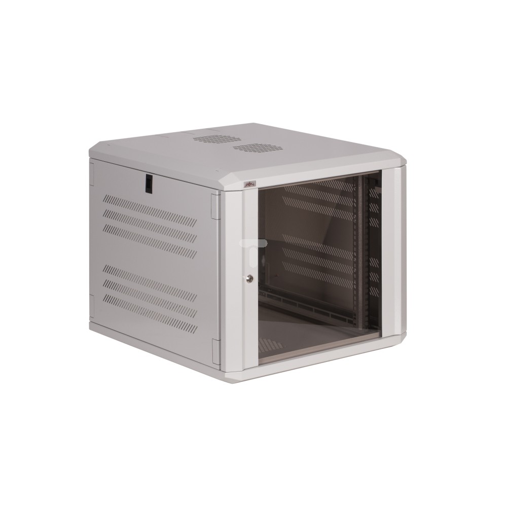 Szafa wisząca 19 cali 9U 600x600mm IP30 ściany boczne otwierane, drzwi z szybą, RAL 7035 (szary) SIDE-O19-9U-60-DS-S