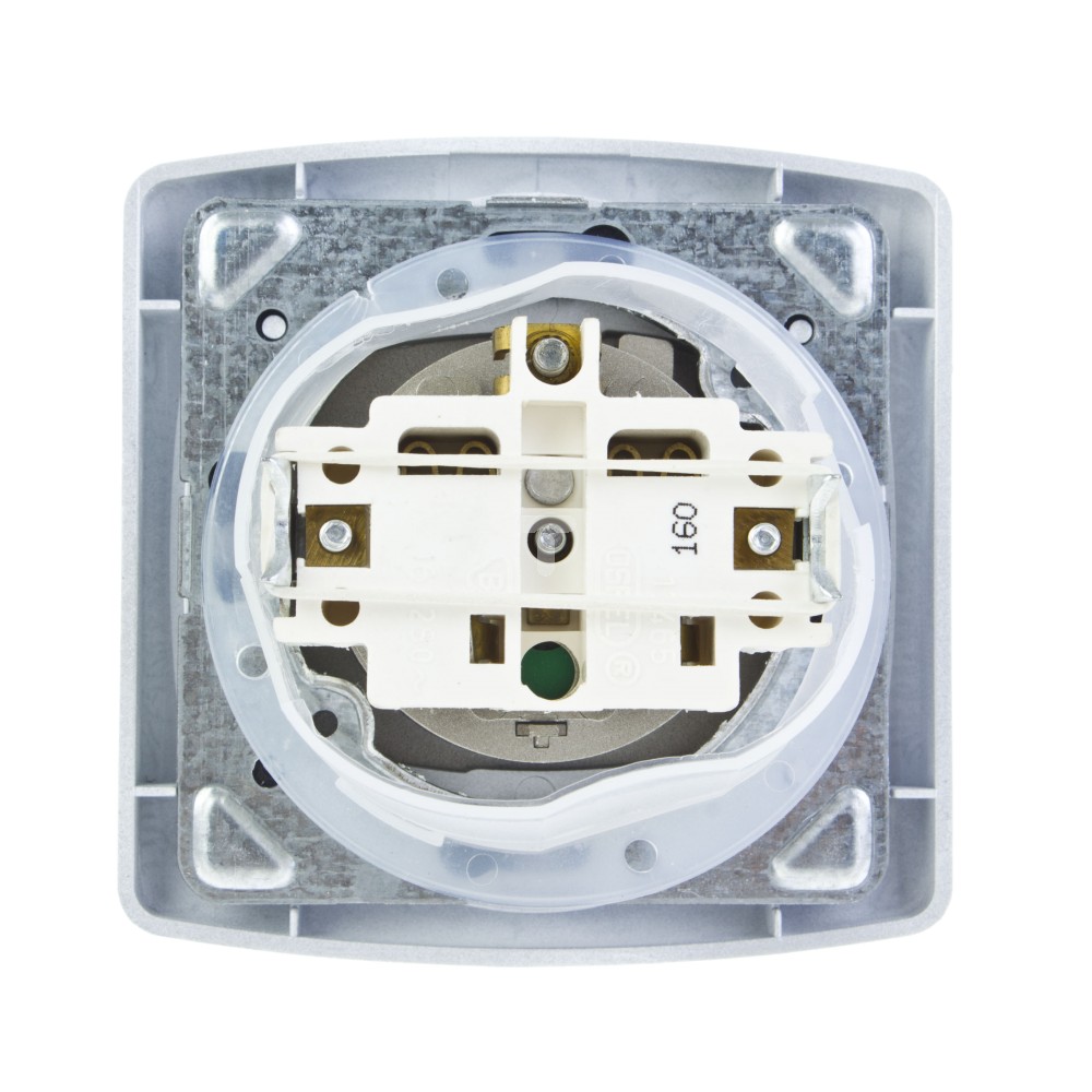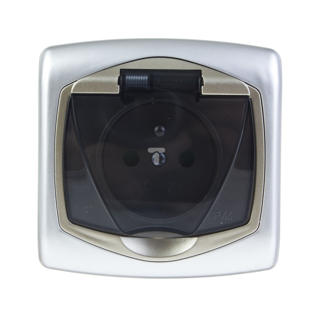 TON Gniazdo bryzgoszczelne z uziemieniem IP-44 wieczko przezroczyste z przesłonami srebro + satyna GPH-1CZP/18/16/d