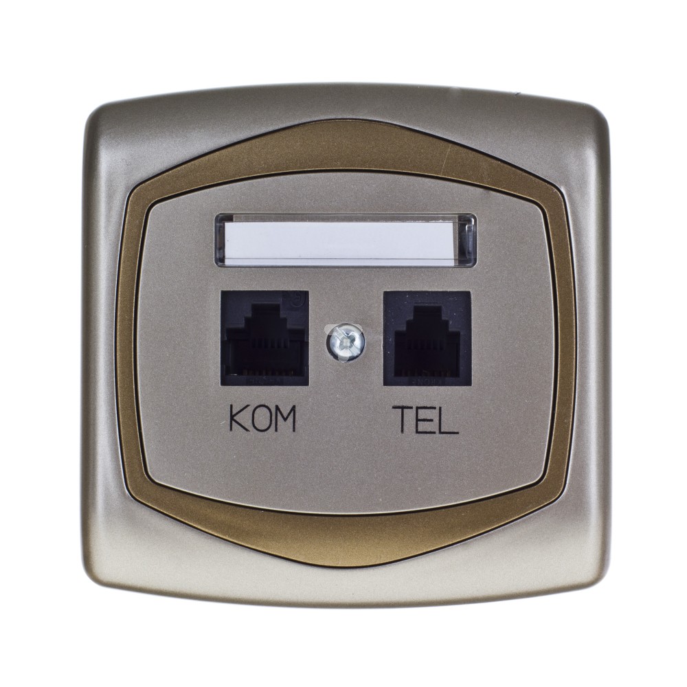 TON Gniazdo komputerowo-telefoniczne RJ 45 kat. 5e (8-stykowe) + RJ 11 (6-stykowe) satyna + złoto GPKT-C/K/16/20