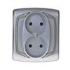 TON Gniazdo podwójne b/u 16A z przesłonami srebro + satyna GP-2CP/18/16
