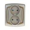 TON Gniazdo podwójne z przesłonami torów prądowych satyna + złoto GP-2CP/16/20