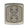 TON Gniazdo podwójne z uziemieniem z przesłonami torów prądowych satyna + złoto GP-2CZP/16/20
