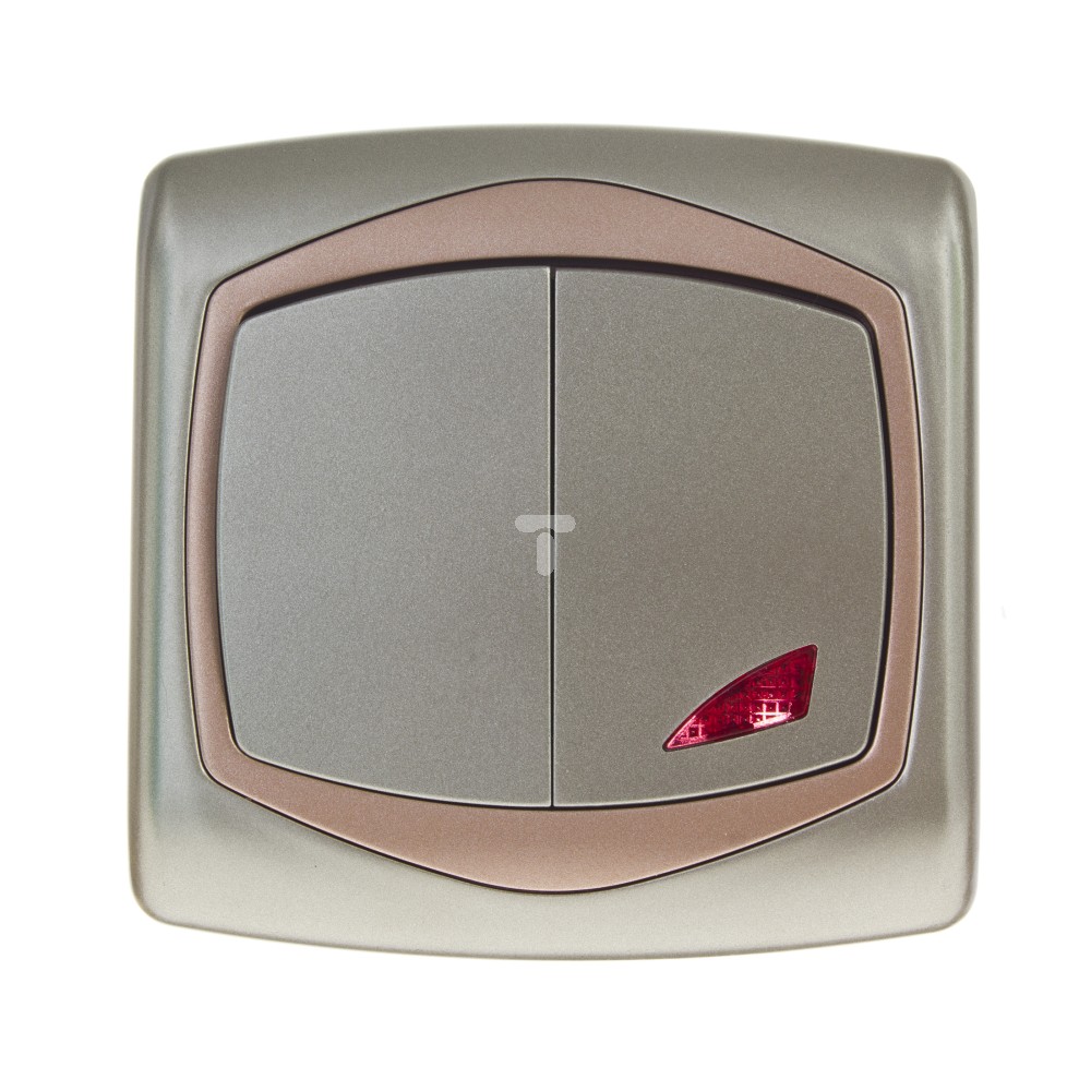 TON Łącznik schodowy + jednobiegunowy z podświetleniem pomarańczowym satyna + miedź ŁP-9CS/16/19
