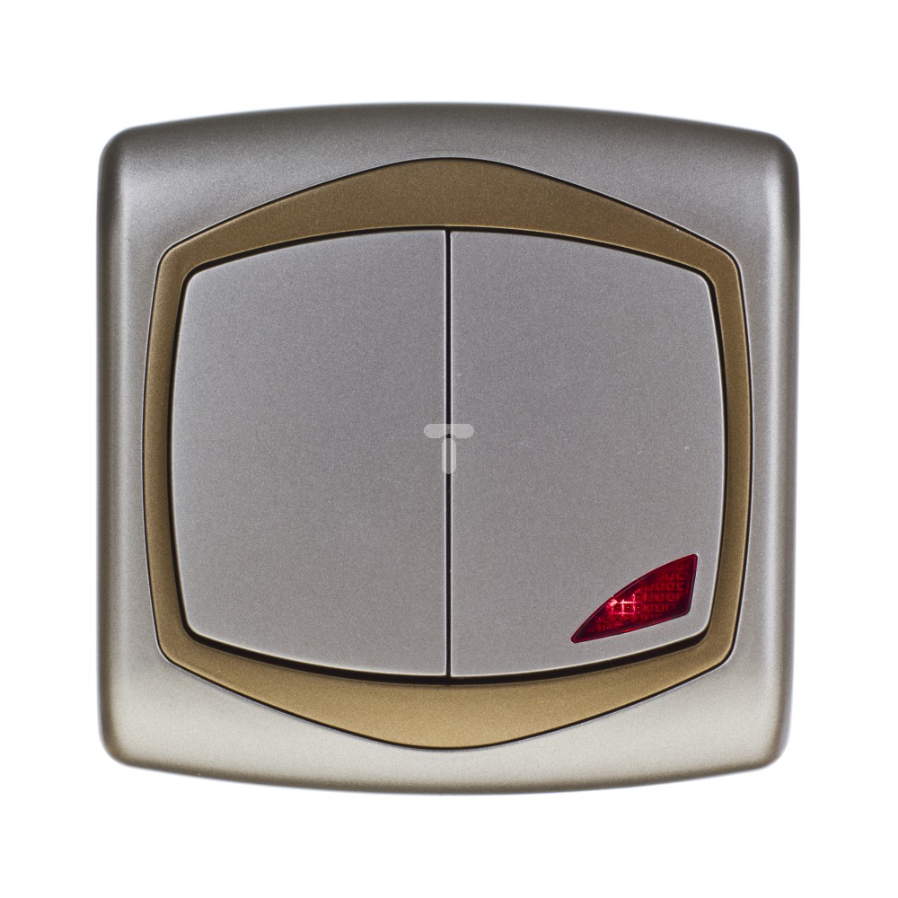 TON Łącznik schodowy + jednobiegunowy z podświetleniem pomarańczowym satyna + złoto ŁP-9CS/16/20