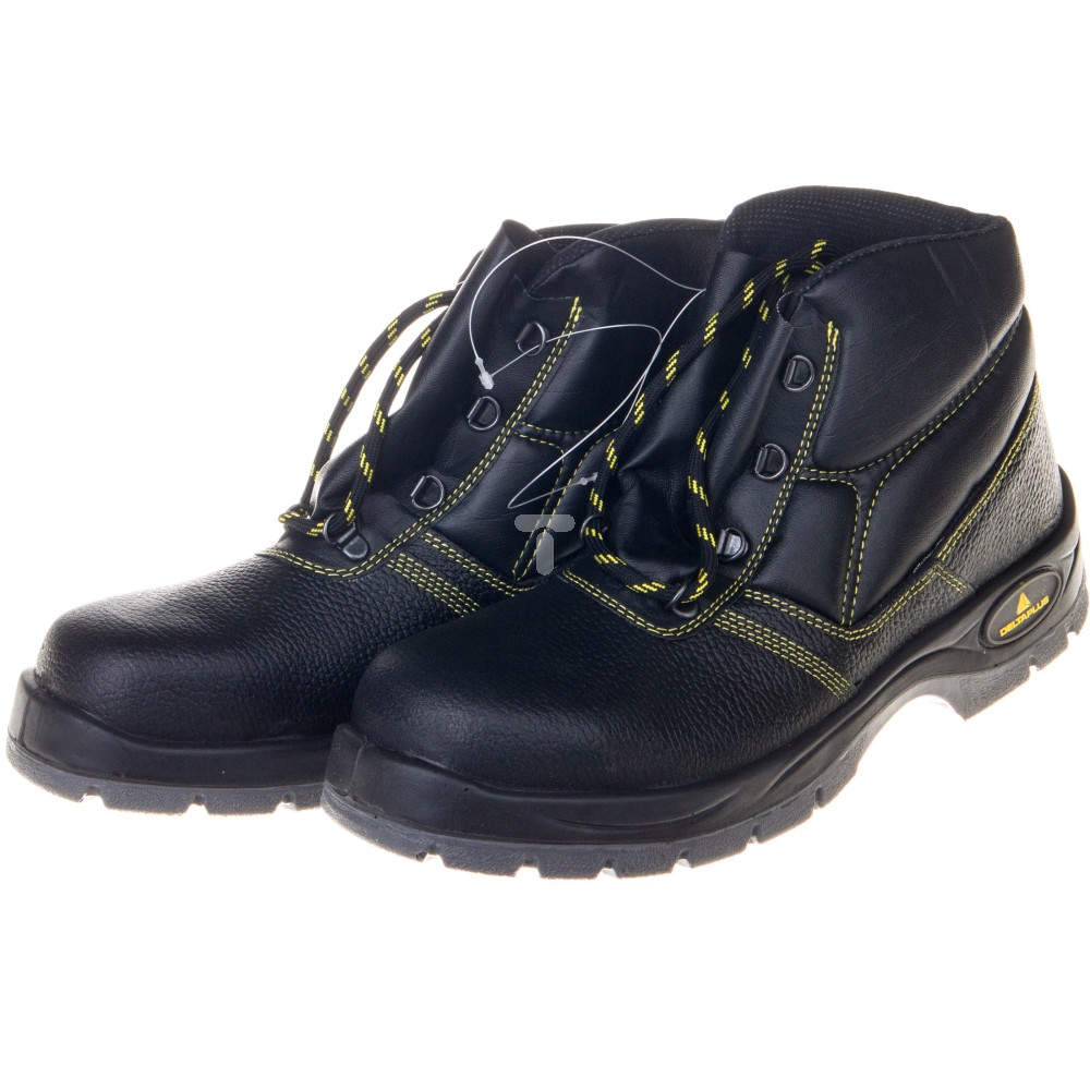 Trzewiki pochodzą z serii Classic Industry, która jest częścią oferty katalogowej marki Delta Plus, renomowanego francuskiego producenta odzieży roboczej oraz akcesoriów BHP. Cholewka obuwia została wykonana z wysokiej jakości skórzanego kruponu barwionego na kolor czarny, który odznacza się dużą wytrzymałością mechaniczną. Antypoślizgowa podeszwa butów natomiast jest zrobiona ze specjalnej mieszanki poliuretanu. Materiał ten cechuje się odpornością na działanie węglowodorów, olejów, hydrolizę. Nie ulega odkształceniom w wysokich temperaturach, co stanowi jego kolejną zaletę. Trzewiki znajdują zastosowanie jako obuwie robocze np. dla pracowników przemysłu, budownictwa, transportu, robót publicznych. Gwarantują one użytkownikom komfort oraz bezpieczeństwo podczas wielu godzin aktywności. Trzewiki mają rozmiar 46. Można je nosić niezależnie od warunków atmosferycznych. Przed zimnem chroni stopy podszewka z poliamidu typu mesh oraz stała, antybakteryjna wkładka. Zabezpieczają one także przed wnikaniem wilgoci do środka butów. Co więcej, trzewiki posiadają także specjalną ochronę palców w postaci podnoska ze stali nierdzewnej. Wytrzymuje on uderzenia i zgniecenia o sile do 200 J. Obuwie robocze spełnia wymagania bezpieczeństwa i jakości, które regulowane są przez międzynarodowe dyrektywy.