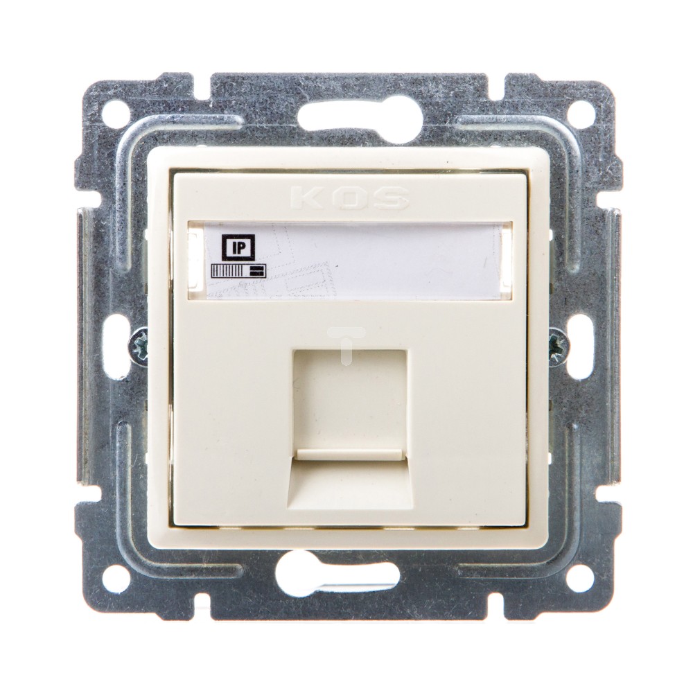 VENA Gniazdo komputerowe pojedyncze RJ45 kat.5e nieekranowane z przesłoną i etykietą kremowe 510365