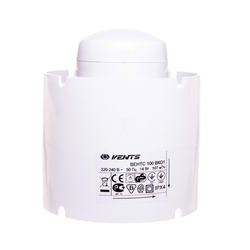 Wentylator kanałowy fi 100 230V 14W 107m3/h 36dB o przepływie mieszanym standard biały100VKO1