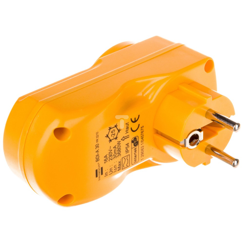 Wtyczka-gniazdo z wyłącznikiem różnicowoprądowym 230V 16A 2P 30mA BDI-A 30 IP54 żółta 1290631