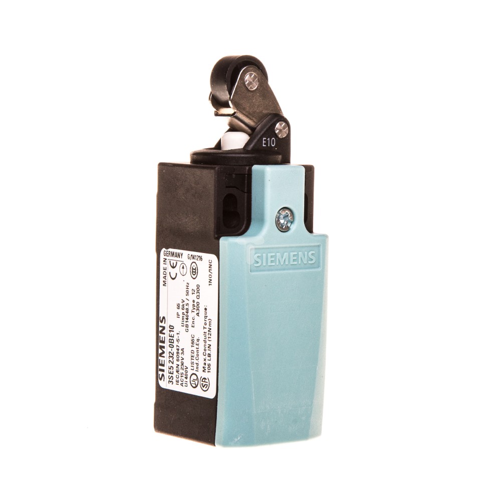 Wyłącznik krańcowy marki SIEMENS jest urządzeniem, które służy do mechanicznego zabezpieczenia urządzeń w przemyśle ciężkim, także w warunkach dużej wilgotności i zapylenia. Czujnik z serii 3 SE został wyposażony w jeden styk zwierny oraz jeden styk rozwierny, nie posiada styków przełącznych. Znamionowy prąd pracy dla AC-15 przy napięciu 24 V i 125 V ma wartość 6 A, przy 230 V wynosi 3 A. Znamionowy prąd pracy dla DC-13 przy napięciu 24 V równa się 3 A, przy 125 V 0.55 A, a przy 230 V to 0.27 A.