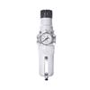 Zespół filtrująco-redukcyjny służy do usuwania z czynnika roboczego zanieczyszczeń stałych i ciekłych oraz do nastawiania i utrzymywania stałego ciśnienia czynnika roboczego w pneumatycznych układach napędowych i sterujących, niezależnie od zmiany ciśnienia w sieci zasilającej, powyżej ciśnienia zredukowanego oraz zmiany objętościowego natężenia ciśnienia. Gwint przyłączeniowy 1/2, zakres ciśnień roboczych : 0.05 - 1.2 MPa, dokładność czyszczenia 40µm. Zakres temperatur: od 0 do +65°C. Sposób za