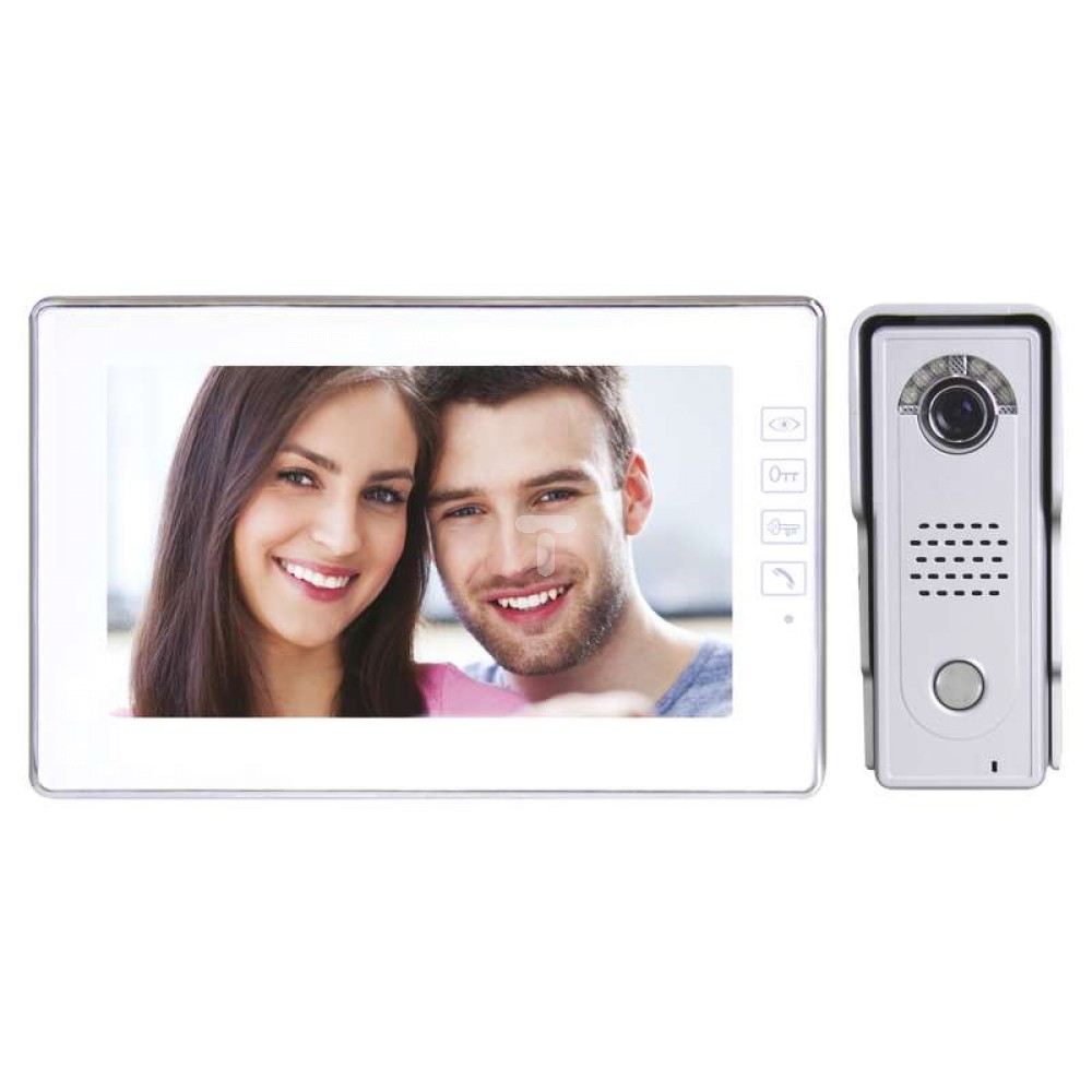 Zestaw wideodomofon głośnomówiący kolorowy 7calowy wyświetlacz LCD z pamięcią zasilanie 15V DC biały + kamera H1019